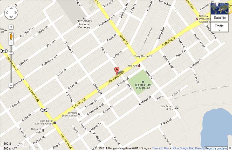 Take the New Albany exit 123 off of I-64. At the end of the ramp go one block and turn left on Market Street. Follow Market Street to Vincennes and turn left. Go one block and turn right onto Spring Street. One block before the next light (Silver Street) turn left onto Jay Street, go half a block and turn into the alley. Nova Counseling Alternatives is on the left.